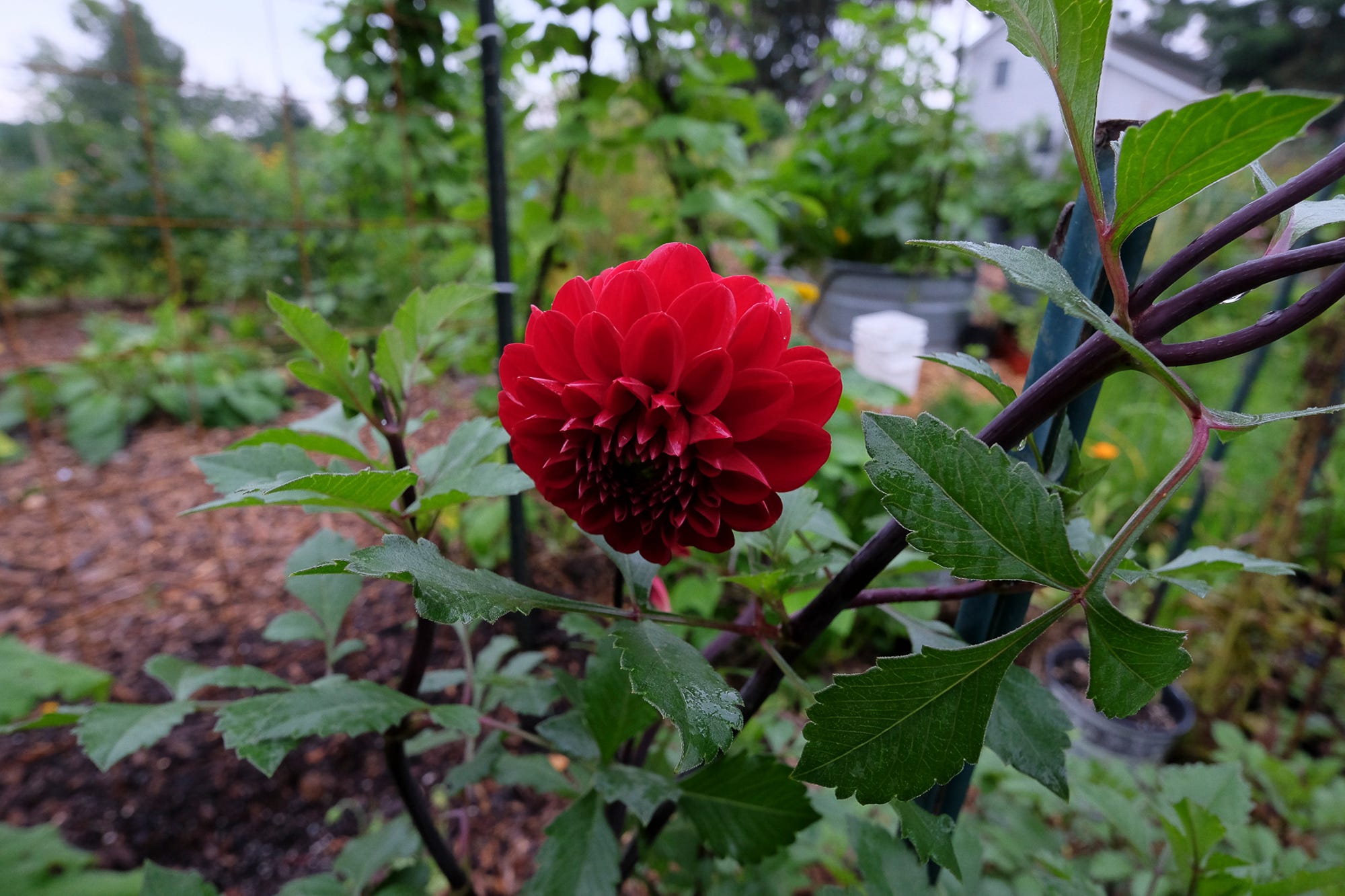 That spring we also bought a little grab bag of dahlia tubers from someone on Facebook. Again, un-named. But hey, they were super cheap. Dahlias with names cost real money! A nice popular dahlia can cost $10-20/ tuber. But an un-named variety might be $5. That bites into the wallet just a little less.